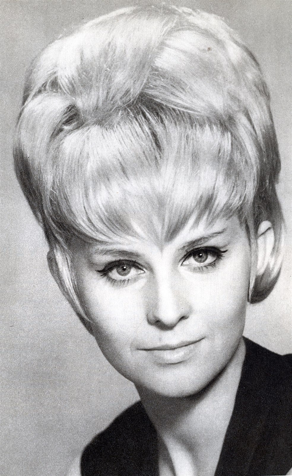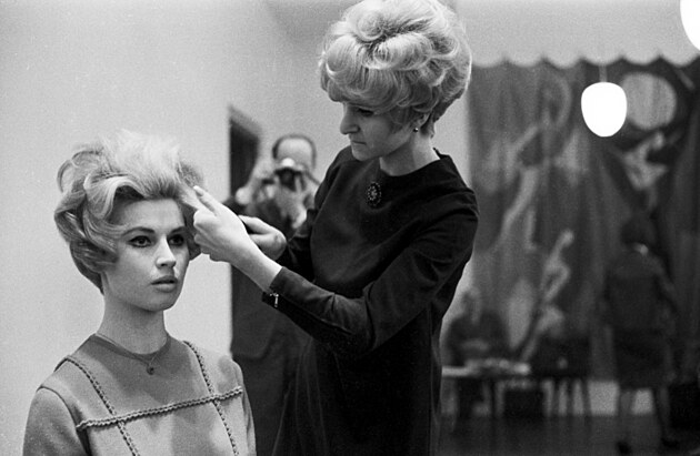 K šedesátým letům patřily zejména natupírované účesy, které daly hodně práce. Do drdolu se údajně pro lepší objem někdy vkládala houska. Na snímku herečka Olga Schoberová