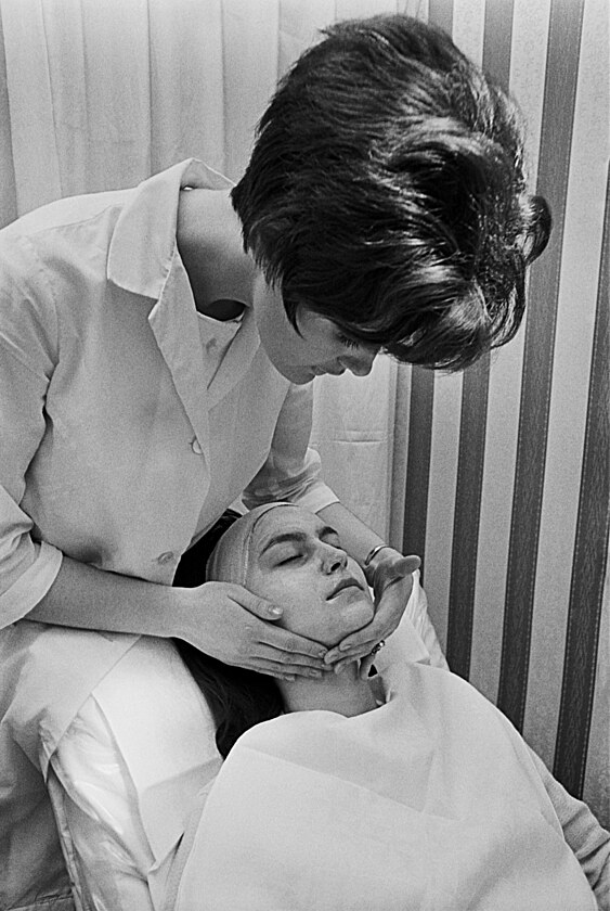 Na snímku z kosmetického salonu v Československých státních lázních v Mariánských Lázních nanáší kosmetička zákaznici pleťovou masku (rok 1970). A jaké značky měly naše maminky a babičky v kosmetickém stolku?