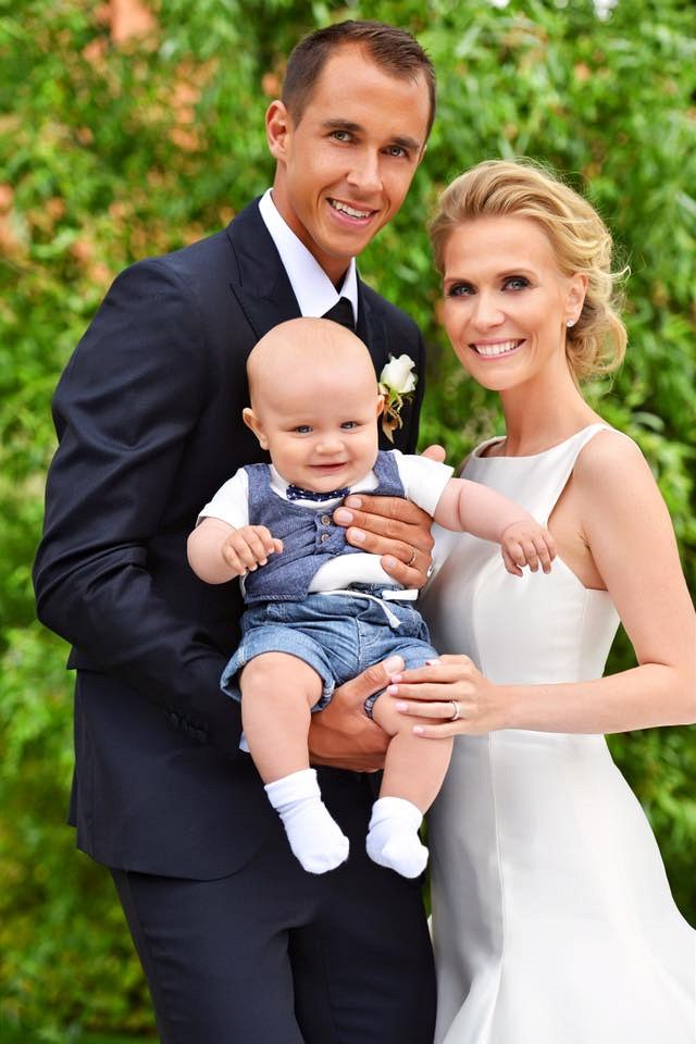 Moderátorka Michaela Ochotská a tenista Lukáš Rosol se synem Andrém v den svatby. V manželství pak byli necelé dva roky.