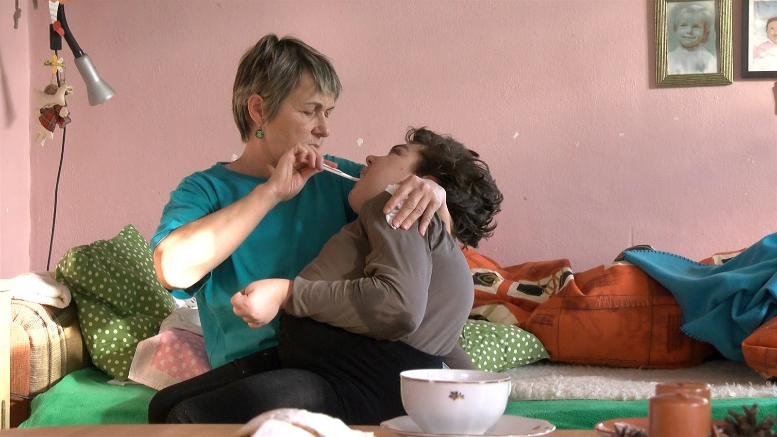Judita je jako mimino, které už ale po sedmnácti letech váží 38 kilo. Obracet ji, přenášet, to všechno stojí Janu Jeriovou hodně sil, ale nestěžuje si.