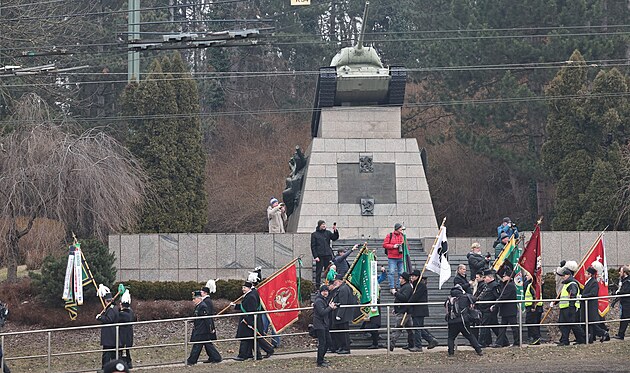 Hornický průvod vycházel od radnice ve Slezské Ostravě a samozřejmě nemohl minout tank T-34, který v dubnu 1945 jako první přejel most přes Ostravici mezi Moravskou a Slezskou Ostravou.