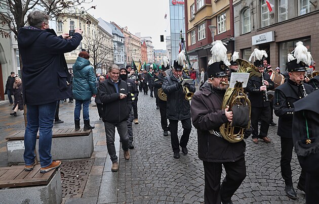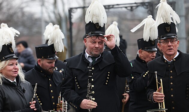 V čele průvodu nemohla chybět hornická kapela. Hornictví naposledy vyprovázeli muzikanti z Havířova.