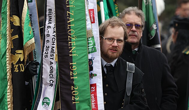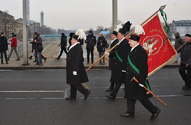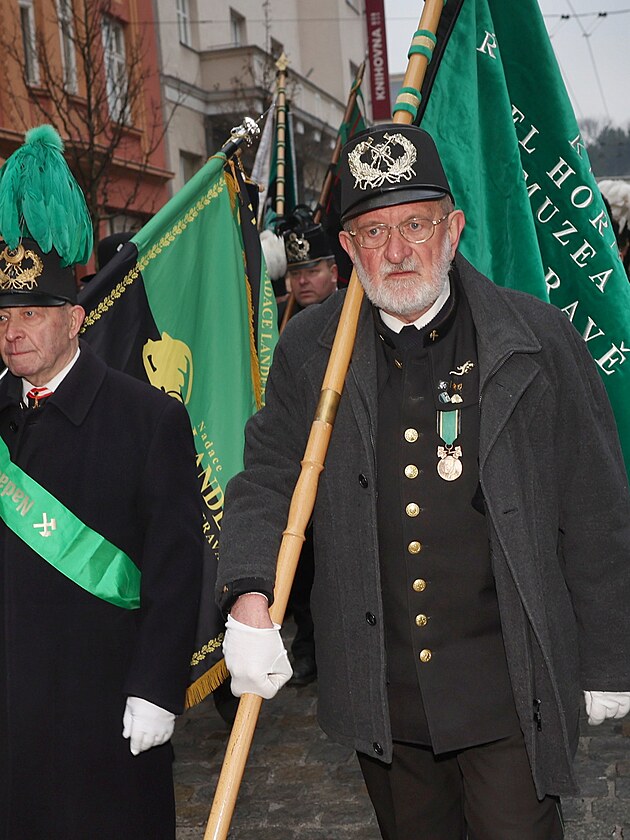 Průvodu se účastnily hornické spolky z celé České republiky. Na fotografii například zástupce severočeské hnědouhelné Bíliny.