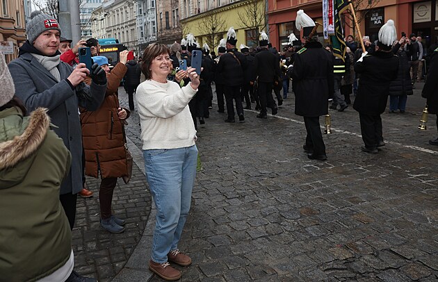 Hornický průvod zaujal v centru Ostravy velké množství přihlížejících. Náhodných i těch, kteří na stovky lidí v průvodu čekali.