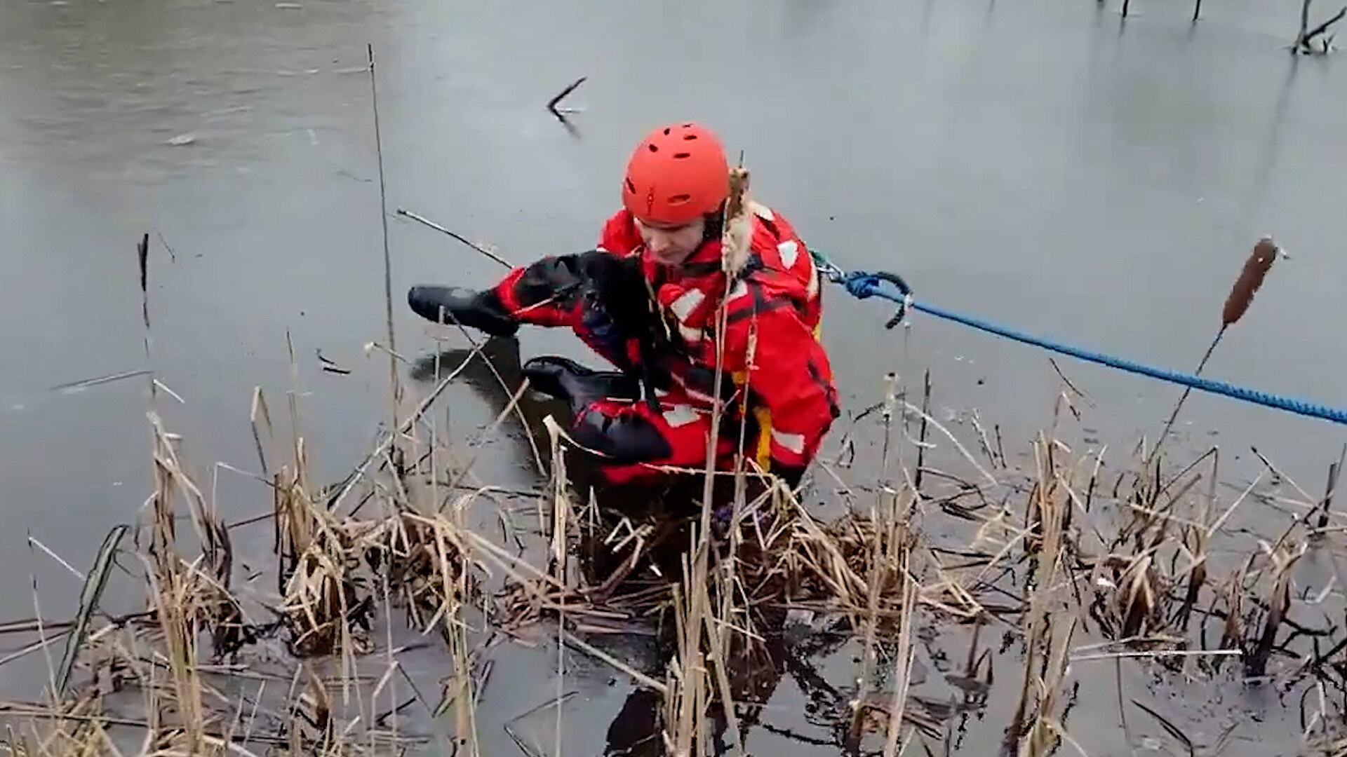 „Na ostrůvku opatrně rozevřel rostliny, které se zde nacházely, a vyprostil tak promrzlé zvíře. To následně bezpečně v náruči, za pomocí kolegů a jistícího lana dostal zpět na břeh. Zde již byl pro pejska připraven tepelný komfort v podobě deky,“ dodala mluvčí. Pes byl následně předán do péče odchytové služby.