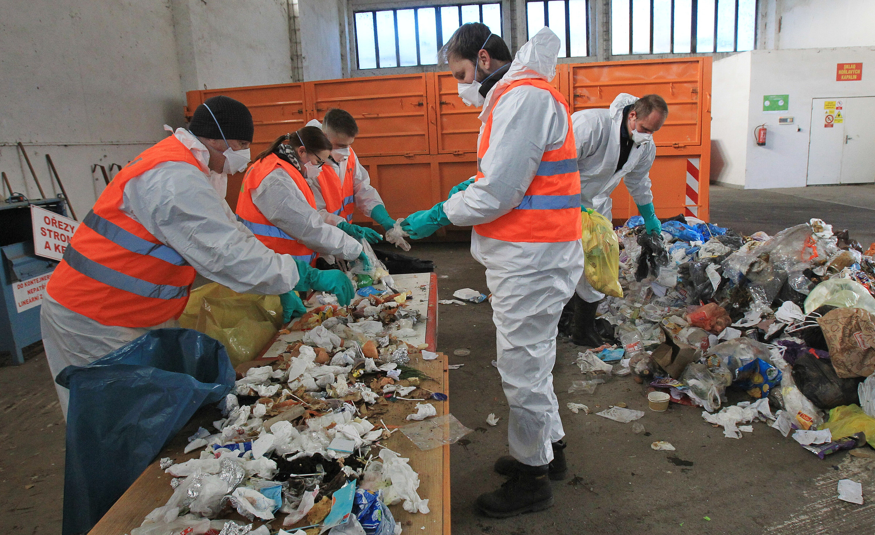 Pracovníci ručně vytřídili jednotlivé složky přivezené hromady. Otevřeli všechny sáčky a odpad rozdělili na patnáct skupin podle druhu materiálu. Při práci byli oblečení do ochranných obleků, měli rukavice a respirátory.