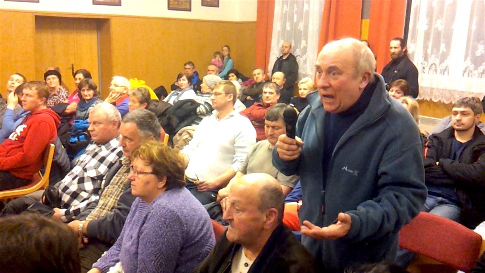 Opakoval však, že problém bude lidem dále vysvětlovat. Dostal příležitost hned při odchodu z obecního úřadu. Tam si na něj počkali občané, kteří se styděli vystoupit v sále před kamerami.