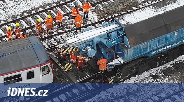 Nehodový vlak s jeřábem během dopoledne dostal motorovou jednotku zpět na koleje. Mluvčí drážních hasičů Martin Kavka po poledni sdělil, že výhybka je natolik poškozená, že muselo dojít k její kompletní výměně.