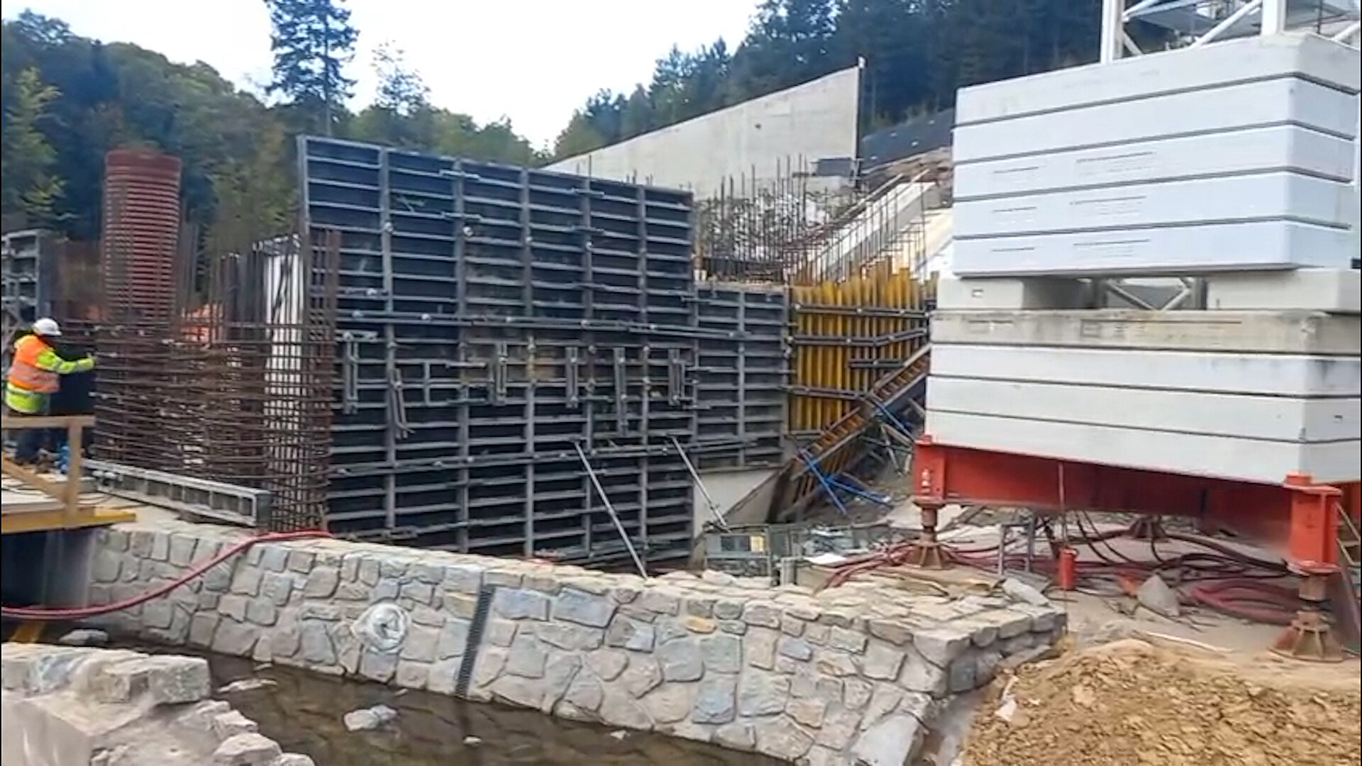 Zatím hráz za půl miliardy korun rostla zejména po stranách údolí. Teď stavbaři polské firmy Budimex převedli tok říčky Krounky do prostupu v betonové konstrukci hráze a díky tomu už mohly vyjet těžké stroje do středu údolí. Tam začaly hloubit prostor pro základy hráze. Budou kombinovat zemní práce s odstřely ve skalním podloží.
