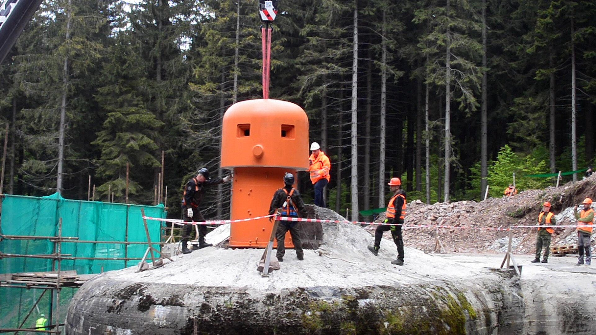 Pak už se dal do práce mohutný jeřáb spolu se sehraným týmem členů Klubu vojenské historie a techniky Ostrava, kteří v úzké vazbě s dodavatelskou firmou repliky zvonů v dílnách ve Vítkovicích vyráběli.