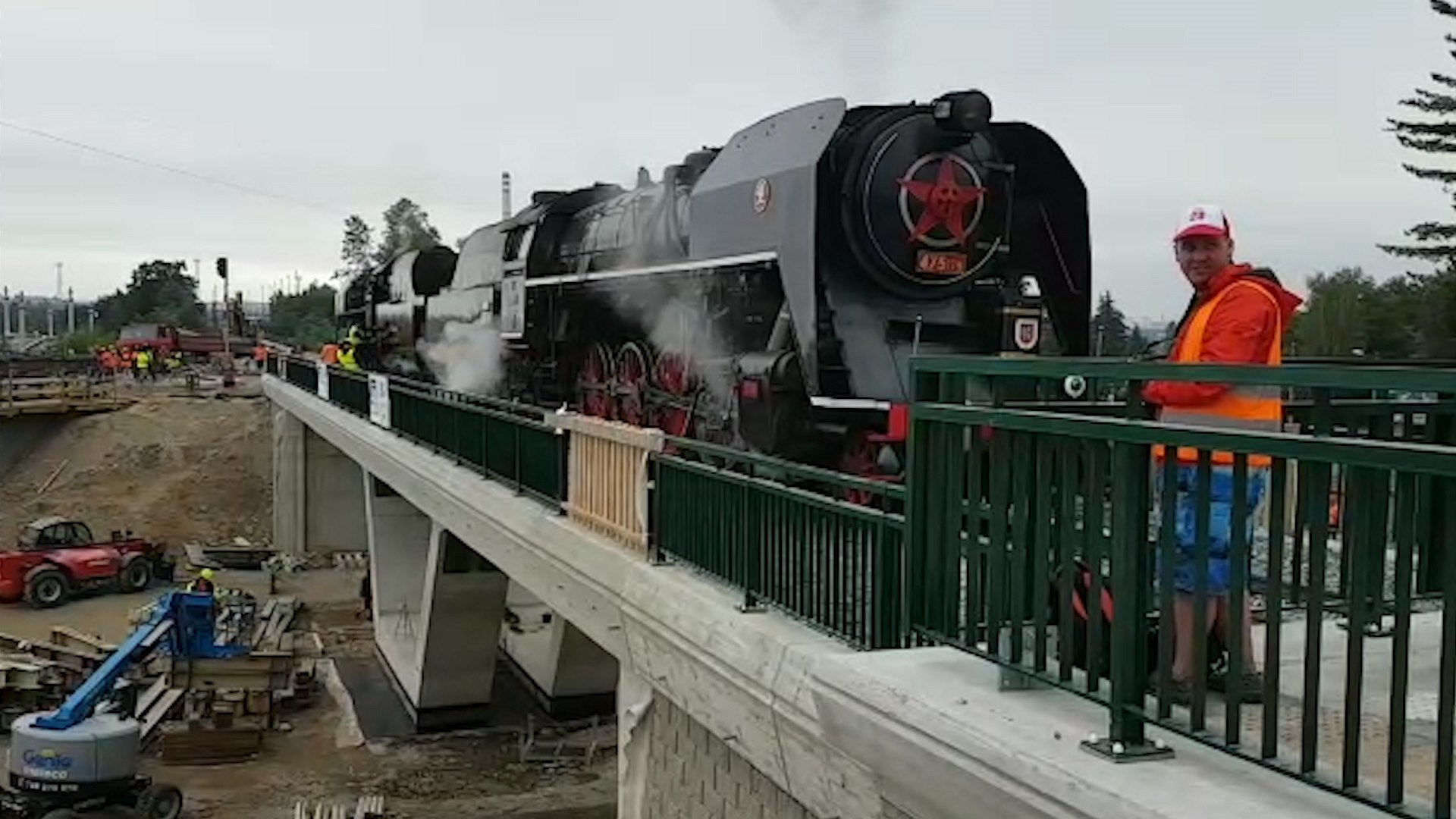 Ve čtvrtek dopoledne na nový most najely dvě historické parní rychlíkové lokomotivy s přezdívkou Šlechtična vyrobené v plzeňské Škodovce, každá o hmotnosti lehce přes 100 tun.