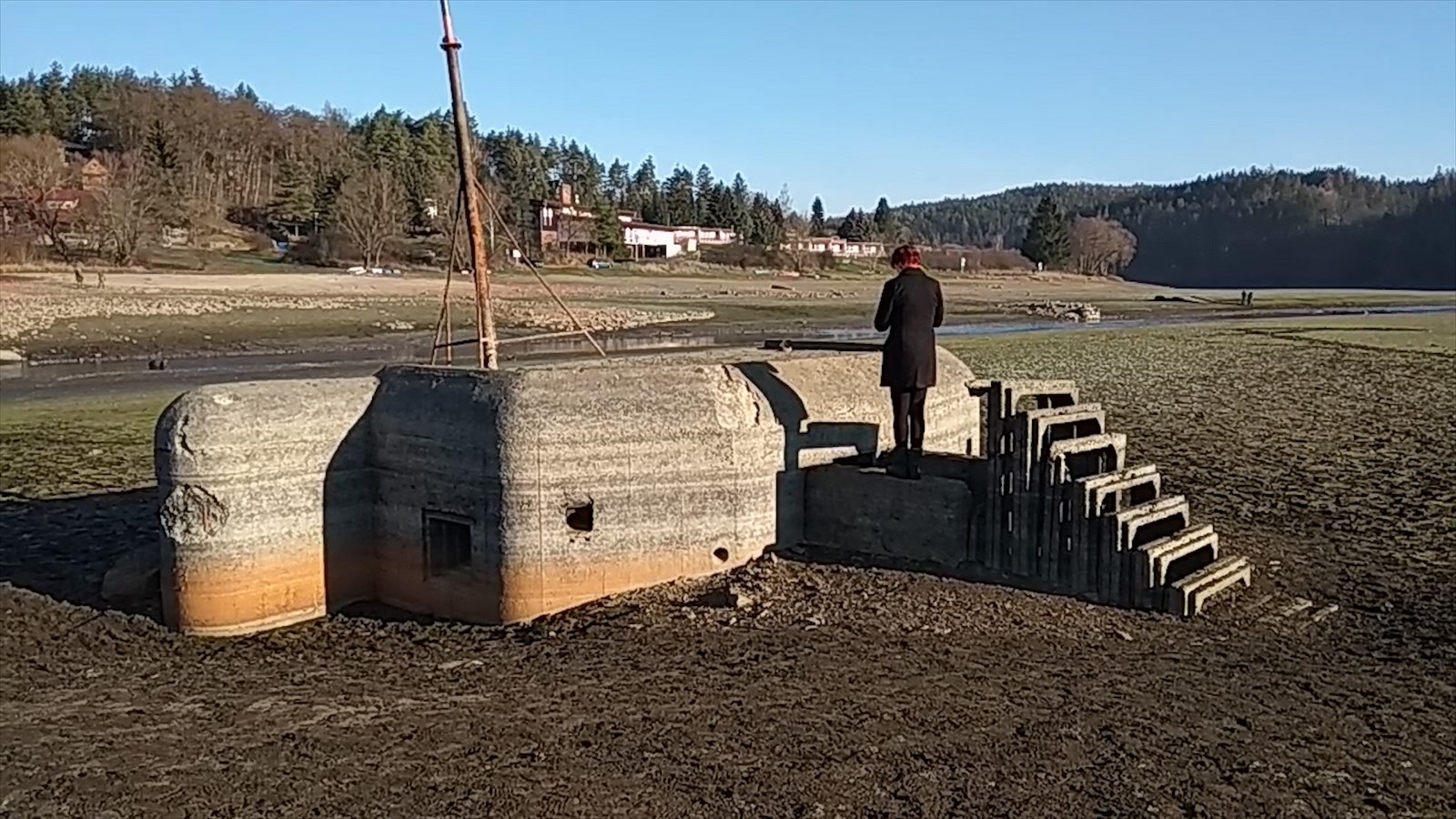 Kromě zbytků po někdejších cestách a domech, které musely v 60. letech minulého století ustoupit přehradě, se nad vyschlým dnem obnažil malý betonový vojenský bunkr vybudovaný před druhou světovou válkou.