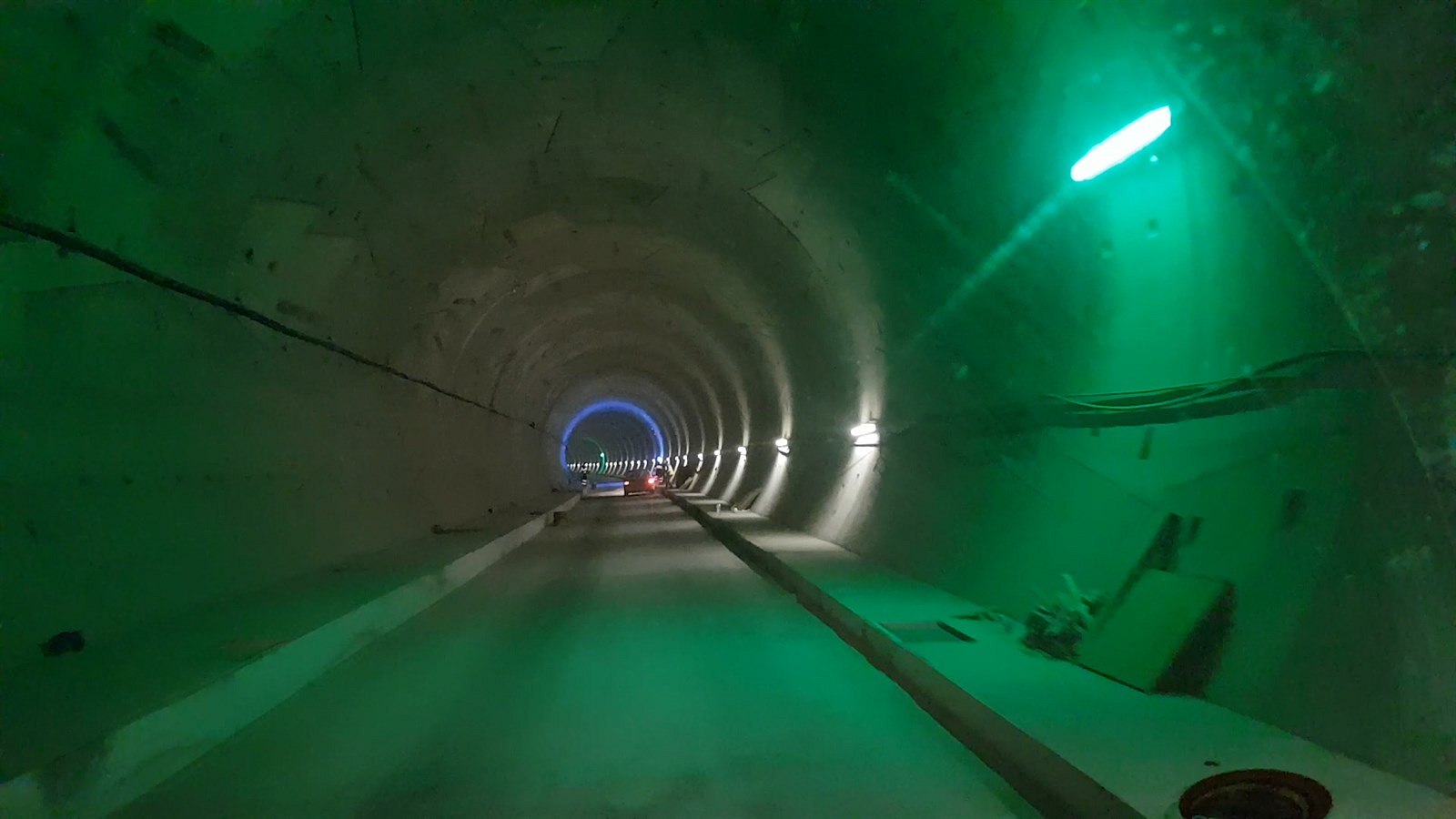 Ačkoli se to nezdá, vnitřek tunelového tubusu je osvětlený pracovními barevnými zářivkami. Kromě běžného bílého světla je na stěnách každých sto metrů zelená, a je tam i osm fialových. Ty jsou jen v místech propojovacích chodeb mezi severním a jižním tubusem.