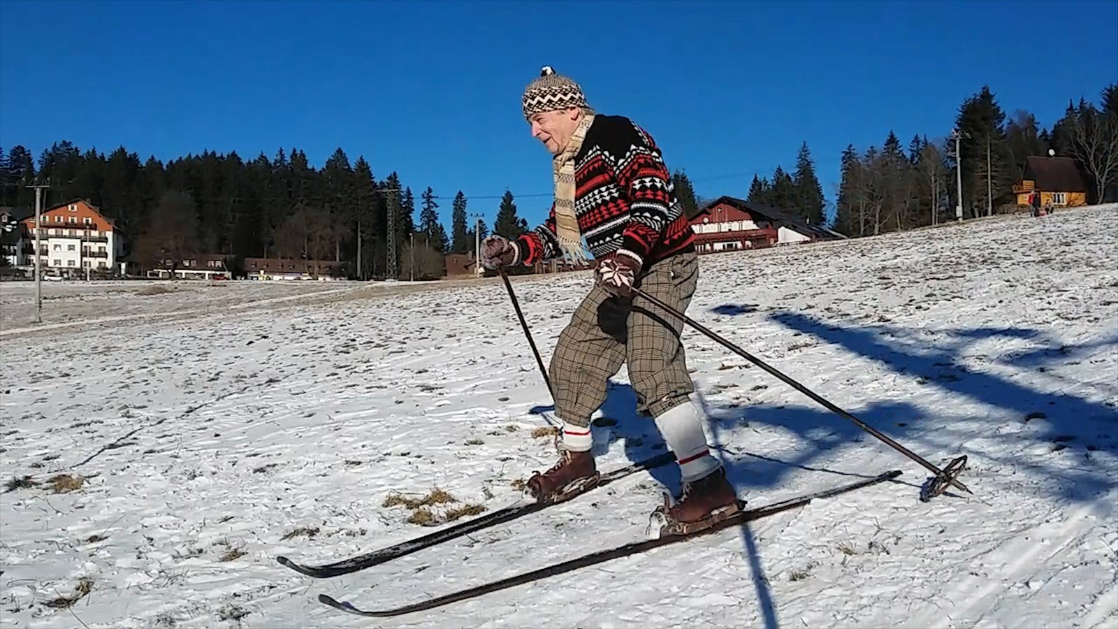 Nadšenci na dobových lyžích přizpůsobili příležitosti i oblečení. Místo moderních softshellových bund tak oblékli vlněné svetry, pumpky navazující na dobové podkolenky, nechyběly klobouky ani kšiltovky.