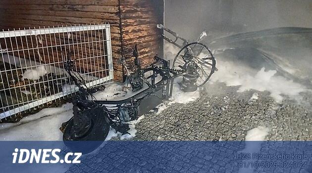 Při nabíjení vzplála elektrokoloběžka a způsobila požár za 1,5 milionu korun. (31. října 2025) | foto: HZS Plzeňského kraje