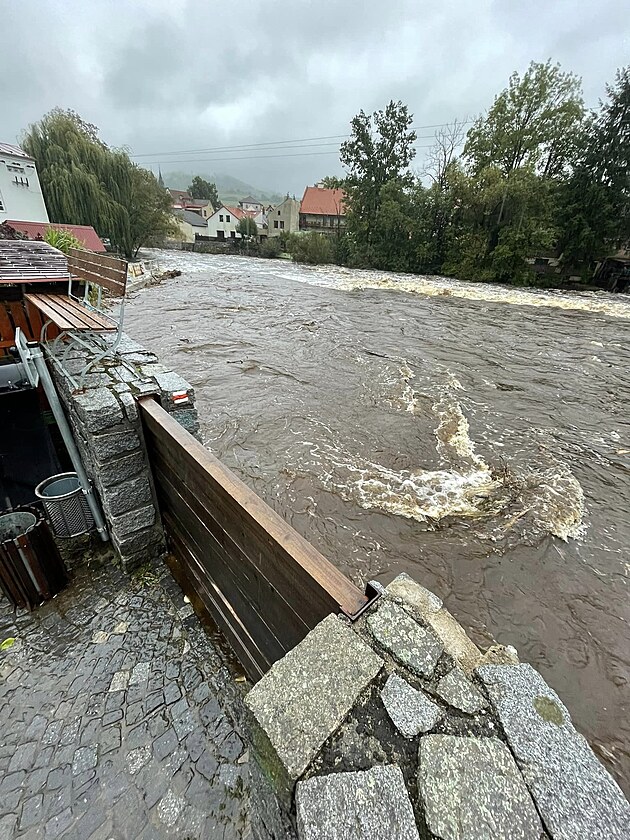 Místní hasiči pravidelně situaci u řeky monitorují.