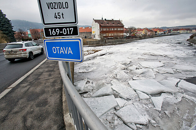 Koryto řeky Otavy v Sušici na Klatovsku zaplnily ledové kry. Síla vodního živlu některé kusy vyplavila až na břeh k cyklostezce. Nejvíce je jich u ostrova Santos. Hasiči situaci pravidelně kontrolují.