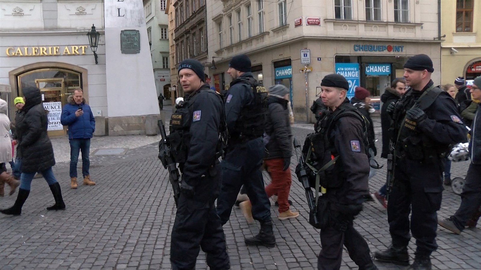 V ulicích tak už večer byli policisté speciální pořádkové jednotky vybavení samopaly. Zvýšenou pozornost ale policisté i strážníci věnují historickým památkám, MHD a pražským nákupním centrům.