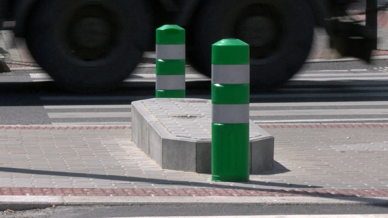 V cestě ale stály dvě šachty vodovodu. Místo toho, aby se potrubí zkrátilo a umístilo pod zem, se jej projektant rozhodl obezdít a označit zelenými balisety.