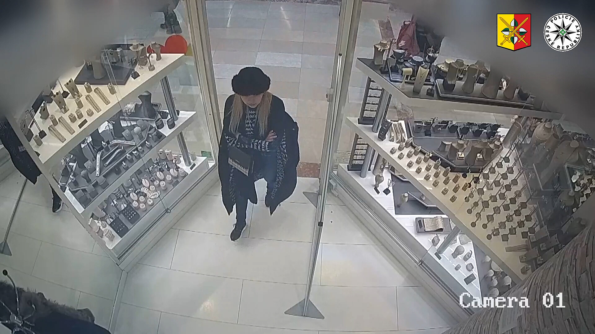 Koordinované počínání dvojice zachytily bezpečnostní kamery. Na nich je vidět, jak se muž baví ze zaměstnankyní za pultem. Žena pak momentu využije, aby ze stejného skleněného pultu vzala stojánek se šperky a schovala si ho do svrchního oděvu.