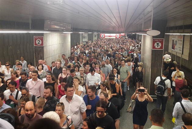 Komplikace ráno postihly cestující na lince metra C, stanice Pražského povstání byla okolo deváté hodiny zaplněna lidmi.