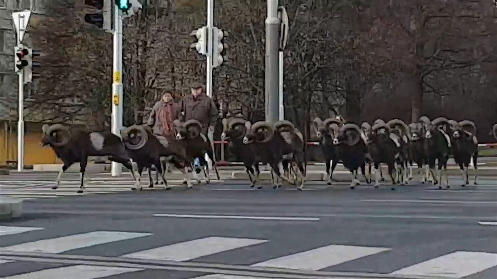 Stádo se zastavilo před frekventovanou křižovatkou a čekalo, až se provoz uklidní. První se rozhodl vyrazit vůdce muflonů, poté ho následovalo i celé stádo. Situace se sešla tak dobře, že při proběhnutí přes cestu utíkali mufloni přes přechod zrovna v tu chvíli, kdy na semaforu svítila zelená pro chodce.