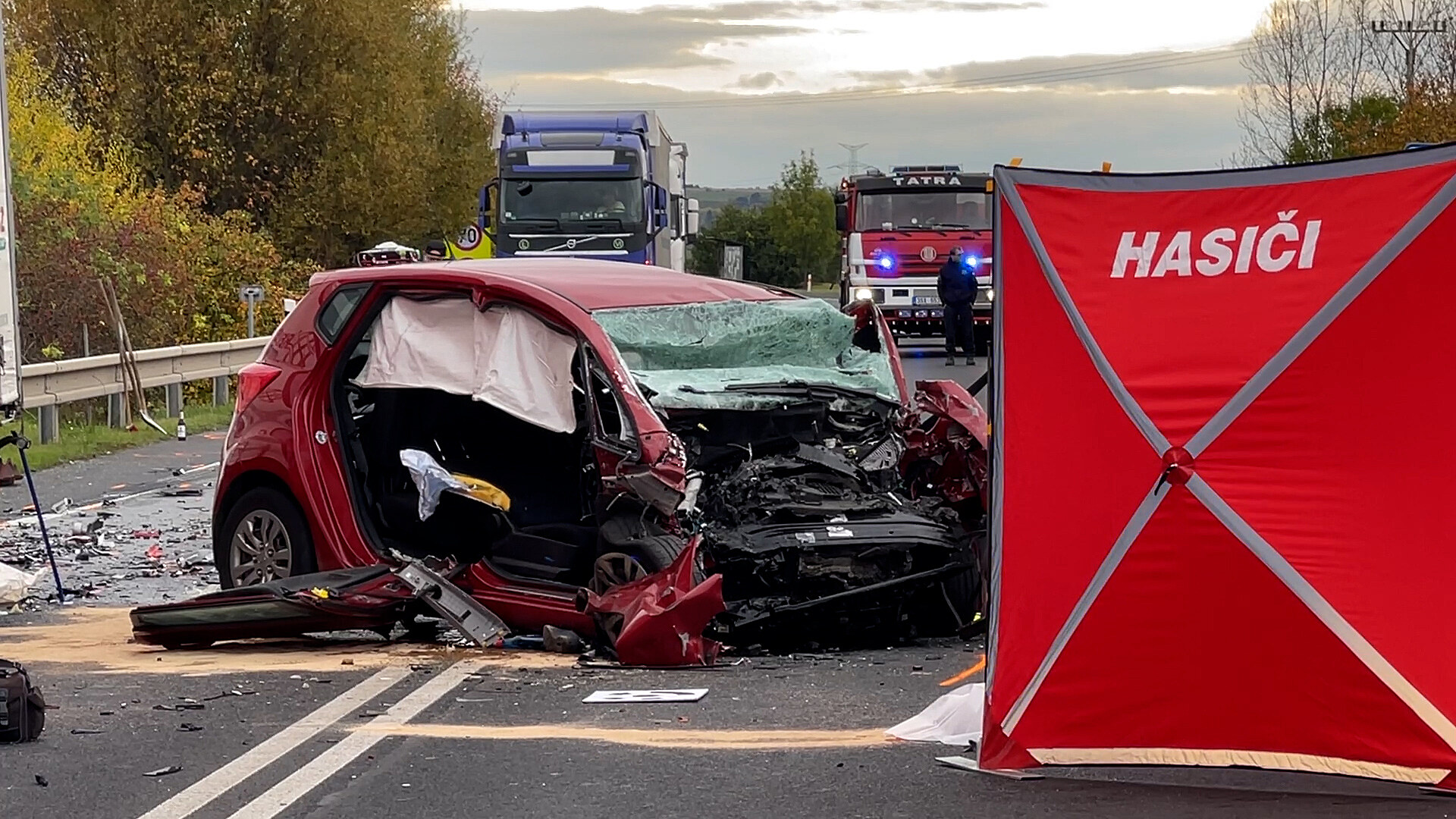 Na místě zasahovali také středočeští hasiči, kteří pomáhali zajistit místo nehody. „Jedna osoba byla vyproštěna před příjezdem jednotek svědky nehody a byla už v péči zdravotnické záchranné služby. Lékař však po chvíli u této osoby potvrdil úmrtí.
