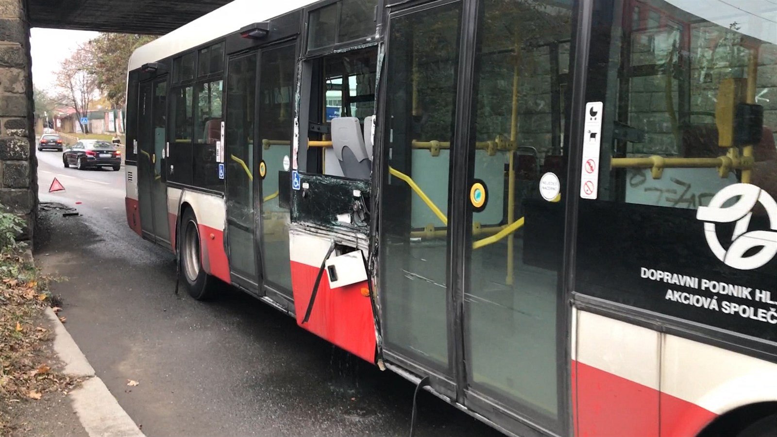 Na autobusu ale vznikla zřejmě vyšší škoda, která se bude teprve vyčíslovat. Z fotografií je patrné, že má poškozený pravý bok na více místech. „Řidič pravděpodobně neodhadl vzdálenost od pilíře,“ dokreslil možnou příčinu policejní mluvčí.