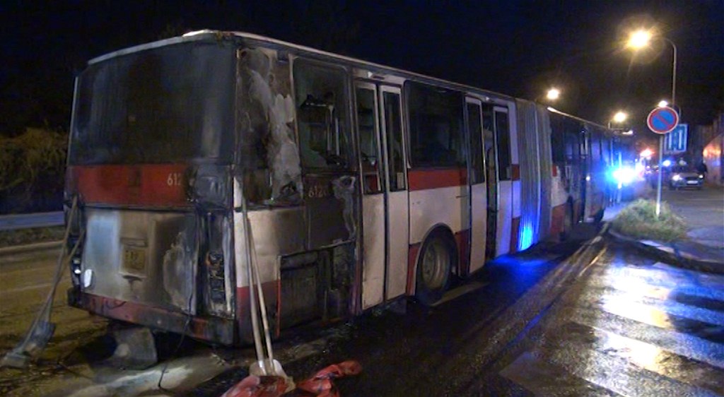 Kvůli požáru, který zasáhl především motorovou část kloubového autobusu musela být na čas celá ulice uzavřena.