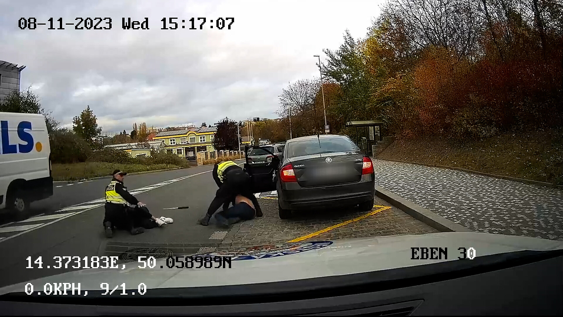 Incident se odehrál ve středu odpoledne. „Autohlídka z Prahy 5 uviděla na kruhovém objezdu mezi ulicemi Peroutkova a Jinonická dvě odstavená vozidla a dva muže, kteří se vzájemně fyzicky napadali a přitom upadli do vozovky. Jeden z nich držel v ruce teleskopický obušek,“ popsala mluvčí městské policie Irena Seifertová.