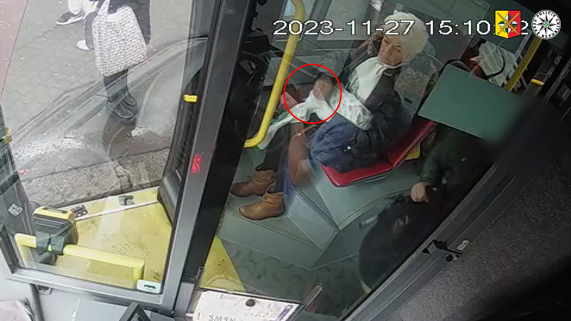 Když žena po nějaké době vystoupila, peněženka na místě již nebyla. Podle kamerových záznamů ji žena rukou v bílé rukavici schovala do tašky, kterou nesla s sebou.