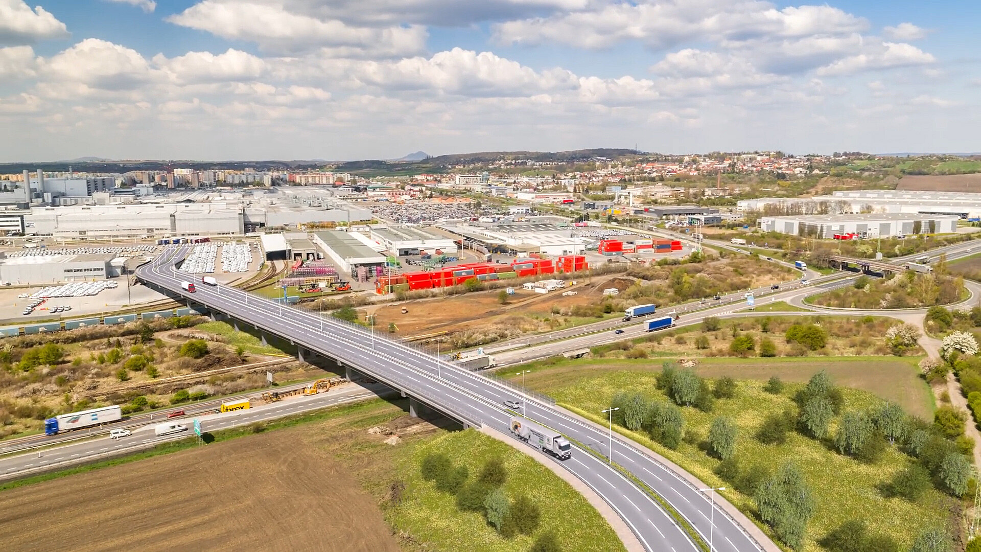 Budovaný příjezd k závodu také využije chystanou mimoúrovňovou křižovatku nad dálnicí D10 u sjezdu číslo 46 Kosmonosy. Dokončení stavby je plánované na červen příštího roku, most by měl stát 650 milionů korun.
