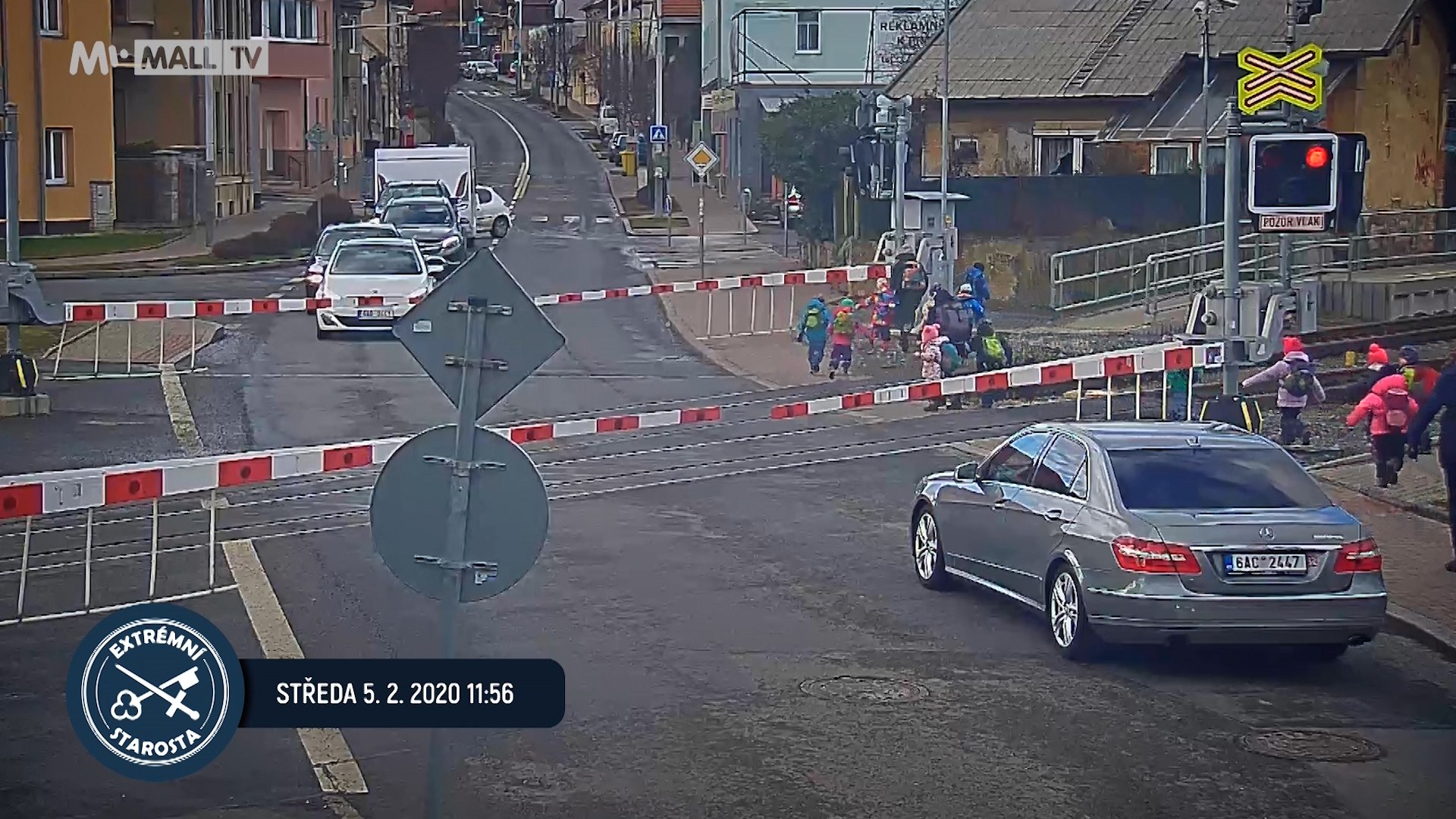 Bezpečnostní kamery zachytily skupinku v momentě, kdy spěchá na vlak stojící v zastávce Praha-Řeporyje. Vychovatelky převádějí děti přes přejezd a zcela ignorují, že blikají výstražná světla a že jsou spuštěné závory.
