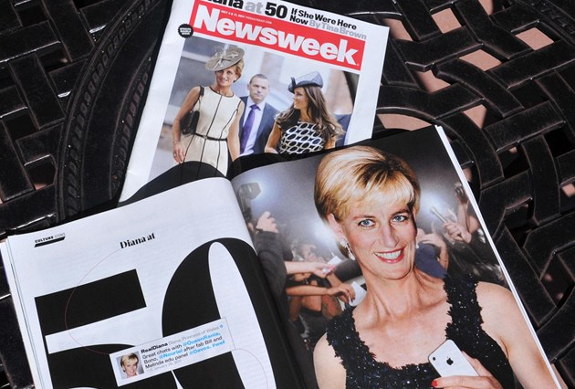 Týdeník Newsweek vytvořil obrázek stylově oblečené princezny Diany, která zahynula 31. srpna 1997 při automobilové nehodě v Paříži. Na jedné fotografii kráčí po boku své snachy, vévodkyně z Cambridge Catherine.