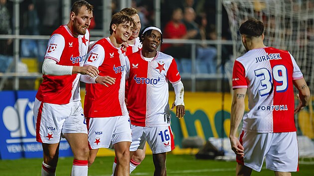 Zlín - Slavia 1:3, domácí udeřili až v závěru, hosty nasměrovali k výhře tři střelci