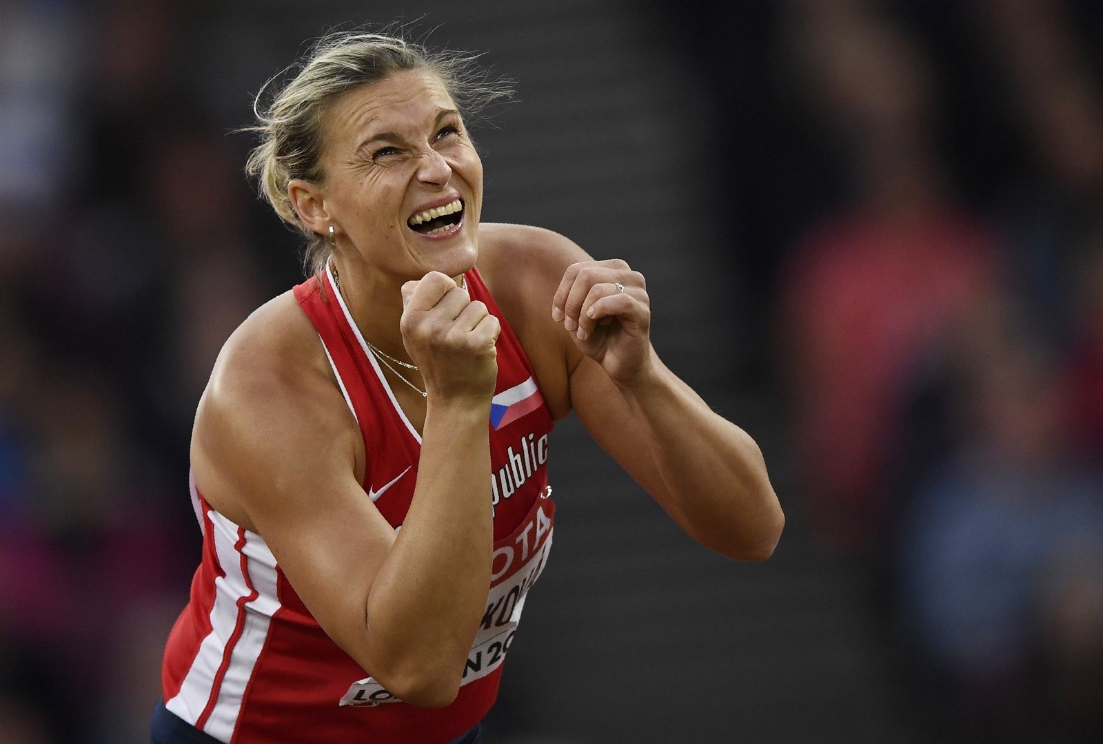„Jo, ten tvar je dobrý,“ popisuje zlatou medaili a dojetí se opět vkrádá do hlasu. „Je na ní hrozně moc symbolů, některým ani nerozumím. Je krásná. Tady je na ní vyrytý i oštěp. A je tu také Londýn, to moje památné město. Vidíte? Tady je Big Ben, Tower Bridge, parlament. Atletika a Londýn, to bude pro mě navždy krásná kombinace. Věřila jsem, že to bude dneska dobrý. Ale že se to opravdu stalo, že jsem vyhrála, doteď nechápu. Je to něco úžasného. Nevím, jak se to stalo. Neumím to ani popsat. Nevím, jestli si to vůbec zasloužím.“