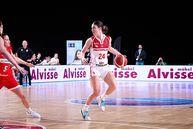EVITA HERMINJARDOVÁ (ŠVÝCARSKO). U slovenských sousedů dobře známé jméno, v posledním finálovém zápase proti Banské Bystrici nastřádala za Piešťanské Čajky 28 bodů. V kvalifikaci na kontinentální šampionát byla nejlepší střelkyní i nahrávačkou ve švýcarském týmu, který na EuroBasket prošel po dlouhých 69 letech.