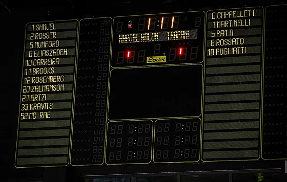Když si jeden z mladíků Matteo Patti udělal po sedmi minutách pátou osobní chybu a na hřišti zbyl jen nejmladší člen týmu Francesco Martinelli, rozhodčí zápas ukončili. Holon v tu dobu vedl 38:5.