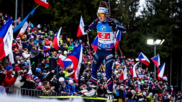 Nedočkavá Francouzka. Zlatá ze smíšené štafety dvojic Lou Jeanmonnotová od startu na nic nečekala a ukazovala, proč jsou Francouzky považované za největší favoritky. Hned v prvním kole začala zbytku pole odjíždět, po bezchybné první položce se osamostatnila a svůj náskok po druhé střelbě zvýšila už na 23 sekund.