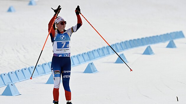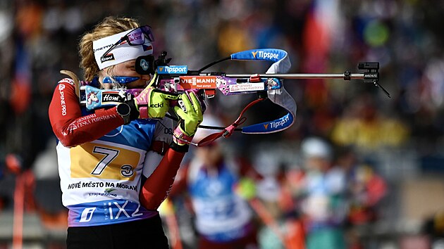 Smutná Tandrevoldová. Vedoucí žena Světového poháru si v Novém Městě prochází střeleckým očistcem, střelbou vestoje přišla o nejlepší desítku ve sprintu i stíhačce, na stojce promarnila zlatý náskok ve smíšené štafetě dvojic. Ani v sobotu si náladu nezlepšila. Vestoje netrefila ani jeden z pěti terčů a třemi opravnými náboji zvládla trefit jen dva. S pěti trestnými koly dovezla Norsko do cíle až na desátém místě.