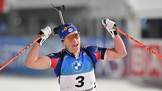 Biatlonistky sice objíždí závody v Novém Městě už ve večerních hodinách, přesto bylo před startem jejich stíhačky stále devět stupňů a Julia Simonová slavila vítězství ve své už tradiční variantě kombinézy s krátkými rukávy.