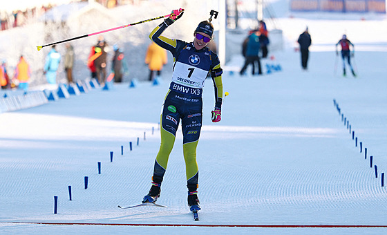Zatímco závod v německém Oberhofu nevyšel vedoucí ženě Světového poháru Lou Jeanmonnotové, která po čtyřech chybách na střelnici obsadila desáté místo, vítězka sprintu Elvira Öbergová od úvodu předváděla profesorskou jízdu.