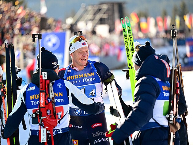 Na trati pak Laegreid přidal dalších téměř dvacet sekund, a mohl tak Vetleho Christiansena poslat do závěrečného úseku s polštářem 53 sekund.