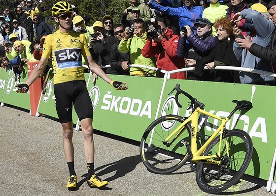 A Froome? Ten zlomil rám. Na kolo ještě zkusil sednout, ale nešlo to, a tak ho po chvíli odhodil a vydal se cíli vstříc po svých! Běžel pár stovek metrů, než dostal své náhradní kolo z týmového vozu.