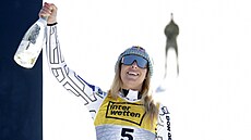 K olympijskému zlatu ze super-G (a dvěma dalším snowboardovým) přidala premiérovou medaili na lyžařském mistrovství světa.