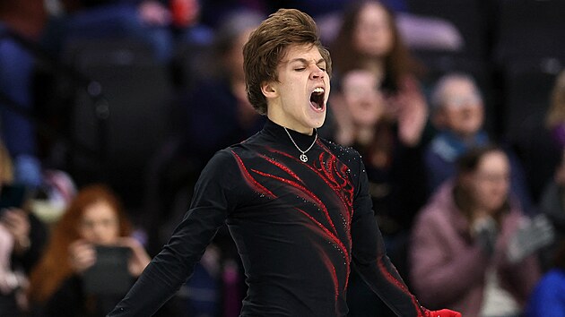 Když zdárně absolvoval šestý ze sedmi skokanských prvků, kombinaci trojitého lutze s trojitým salchowem, Březina se už u ledu neudržel a pěstí nadšeně bušil do mantinelu.