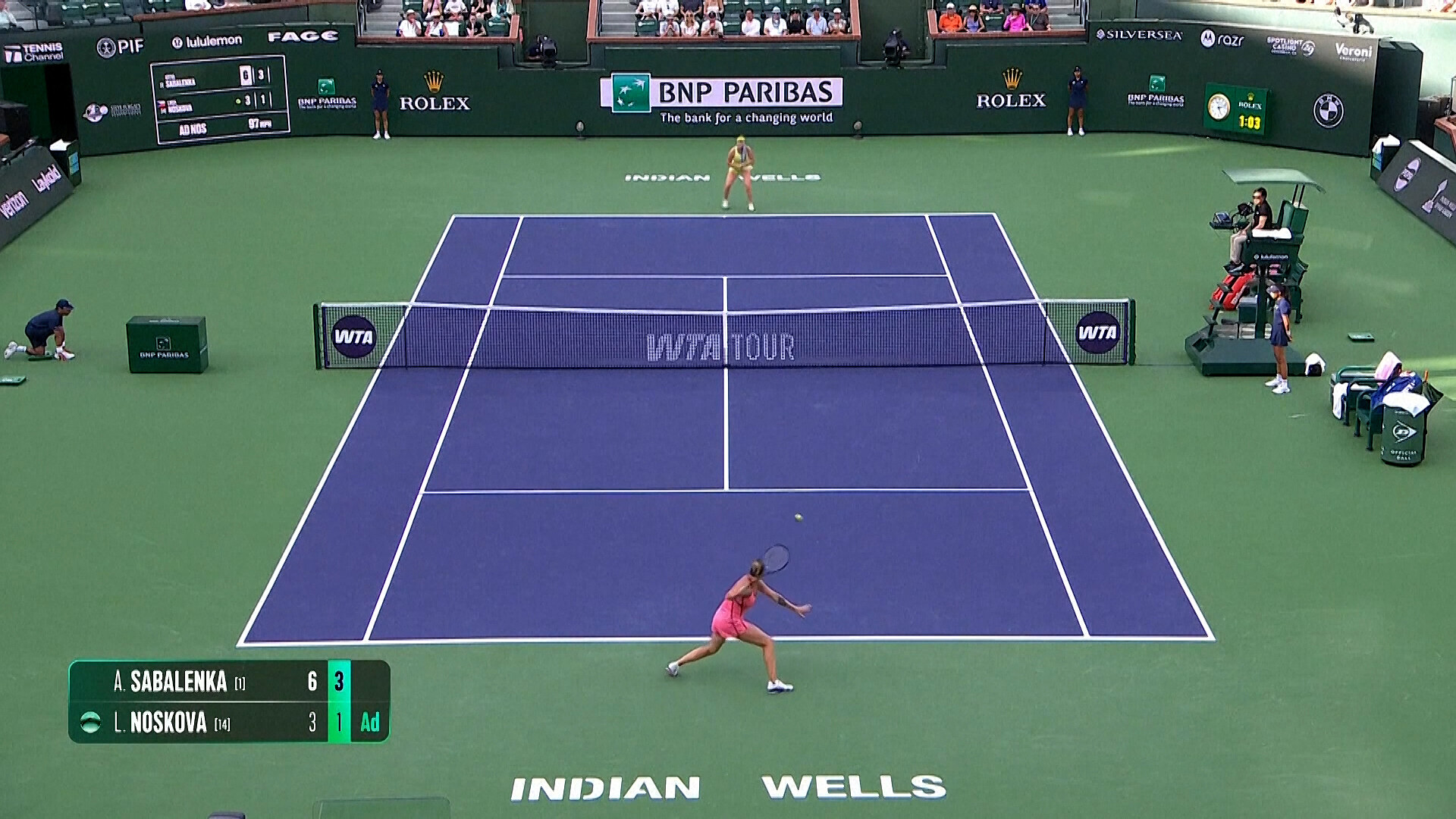 Nosková proti Sabalenkové přišla třikrát o servis, brejkla ji pouze jednou. Běloruska zaznamenala také 11 es.