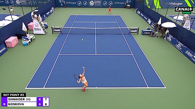 Ve druhé sadě Šnajderová odskočila do vedení 3:0, náskok už nepustila a vynutila si třetí set. V něm Nosková otočila ze stavu 0:2 a v koncovce o výhře nad světovou třináctkou rozhodla čistými hrami v posledních dvou gamech. V utkání si pomohla i 16 esy.