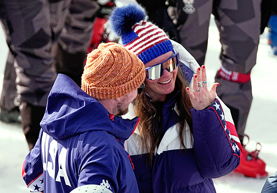 Dojatá Johnsonová si sundala sluneční brýle, bez váhání řekla ano a dvojice se objala za hlasitého potlesku publika, závodníků i členů americké výpravy.