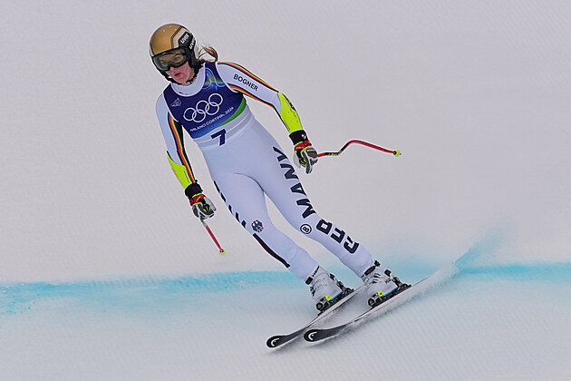 Němka Emma Aicherová smutní poté, co nedokončila olympijské super-G